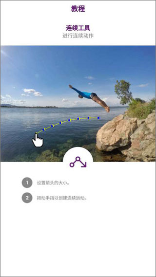 使用标准尺寸的箭头进行连续移动。只需选择序列工具,使用控制栏设置箭头大小并在屏幕上拖动手指即可创建序列。