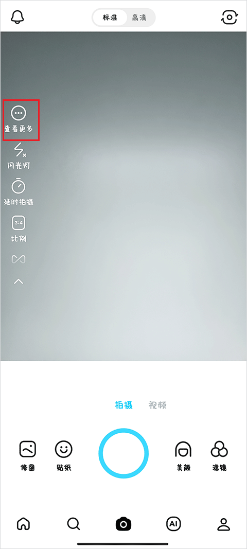 1、打开SNOW相机App,在主界面点击左侧的【查看更多】;