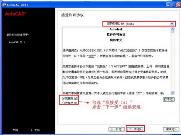 5第五步:进入CAD2011协议界面