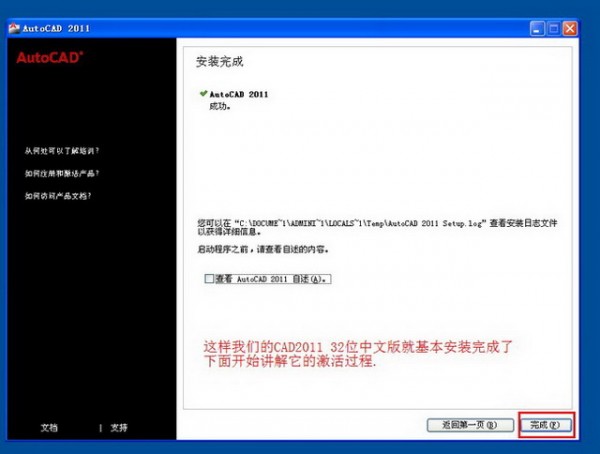 点击“完成” 这样我们CAD2011 32位中文版就安装完成了
