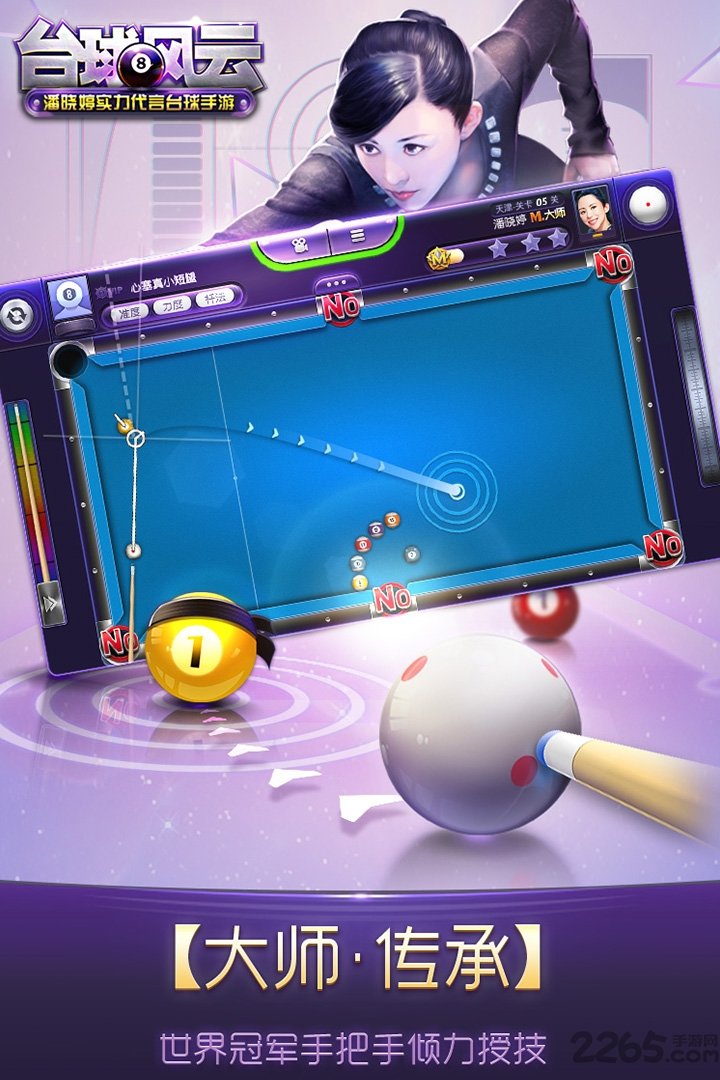 九游桌球风云手游是通过桌球天之后潘晓婷整体实力品牌代言,国际性七大台球杆商标授权,以高质量为基础,100%还原历史台球运动的新一代桌球手游游戏.其别具一格的创新玩法,不但有晓婷从零谈书法球艺,而且还能参与各种奖品丰厚的公平竞赛赛事,成就自己的桌球冠军之路!