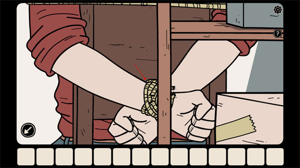 1、游戏一开始就是主角被绑住了,你需要点击自己,磨动绳子的方式来将自己解绑。