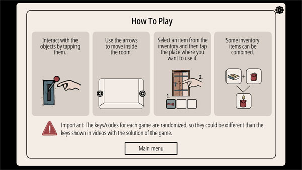 重要提示:每个游戏的钥匙/代码都是随机的,所以它们可能与游戏解决方案视频中显示的钥匙不同。