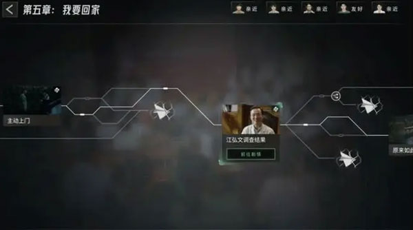 8、在修改好前两个剧情点的选项后,再回到第五章,划到故事线最后,选“江弘文的调查结果”的剧情;