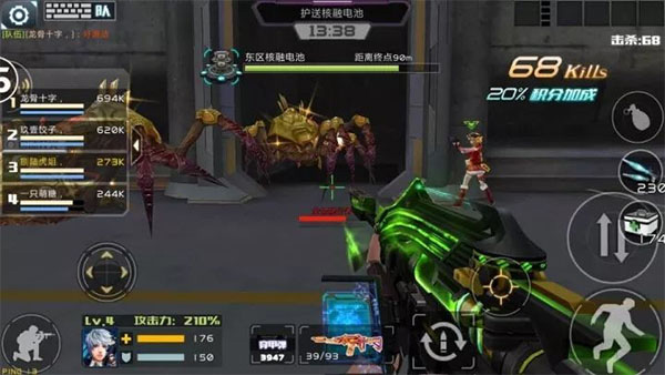 破坏了“灼热原生体”后,基地会空降一枚核融电池,核融电池会沿着电磁轨道缓慢移动,此时怪物会从通道冲出对其进行攻击。刷分的玩家尽量全数击杀“金蜘蛛”,当“金蜘蛛”刷出时,不要马上击杀,让“金蜘蛛”走到电池处,这样会有充足的时间击杀。需要一个队友进行助攻,建议助攻的时候,帮助刷分的队员打半个基数的子弹。其他队友掩护核融电池。