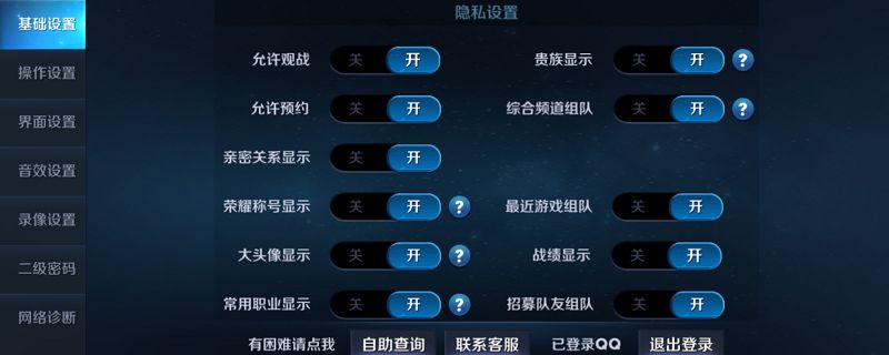 1、进入游戏点击设置中的基础设置,在【隐私设置】这一栏中有战绩显示的开关,关闭后,其他人将无法查看召唤师的历史战绩。