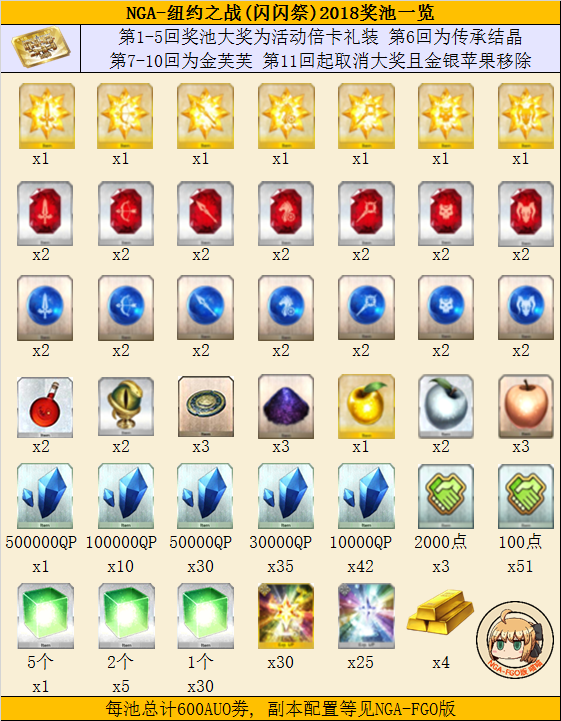 以上就是FGO日服闪闪祭的无限池奖励表了,10池以后的奖励就取消大奖,大家可以根据自己对奖池材料的需求绝对肝不肝。更多FGO资讯攻略,欢迎点击2113FGO专区。