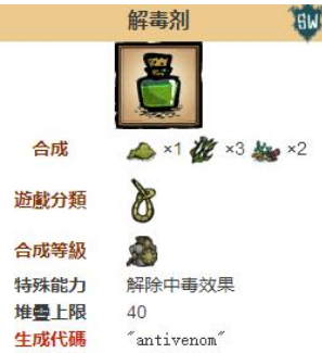 解毒剂的制作材料只需要三种,分别是毒腺*1、海带*3和珊瑚*2,需要科学仪器解锁。制作好以后在物品栏中找到解毒剂,右击选择“一饮而尽”,就能解除中毒状态了。