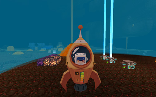 2、填充满石油燃料后,我们就可以登上火箭了,可以看到中间的燃料槽已经被我填满啦(电脑端对火箭右键使用航空燃料即可填充,安卓版手持航空燃料点击火箭即可填充),填充满燃料后,火箭的舱门就会打开,我们进去就OK了(电脑端点击鼠标右键即可进入,安卓版点击火箭即可进入)。
